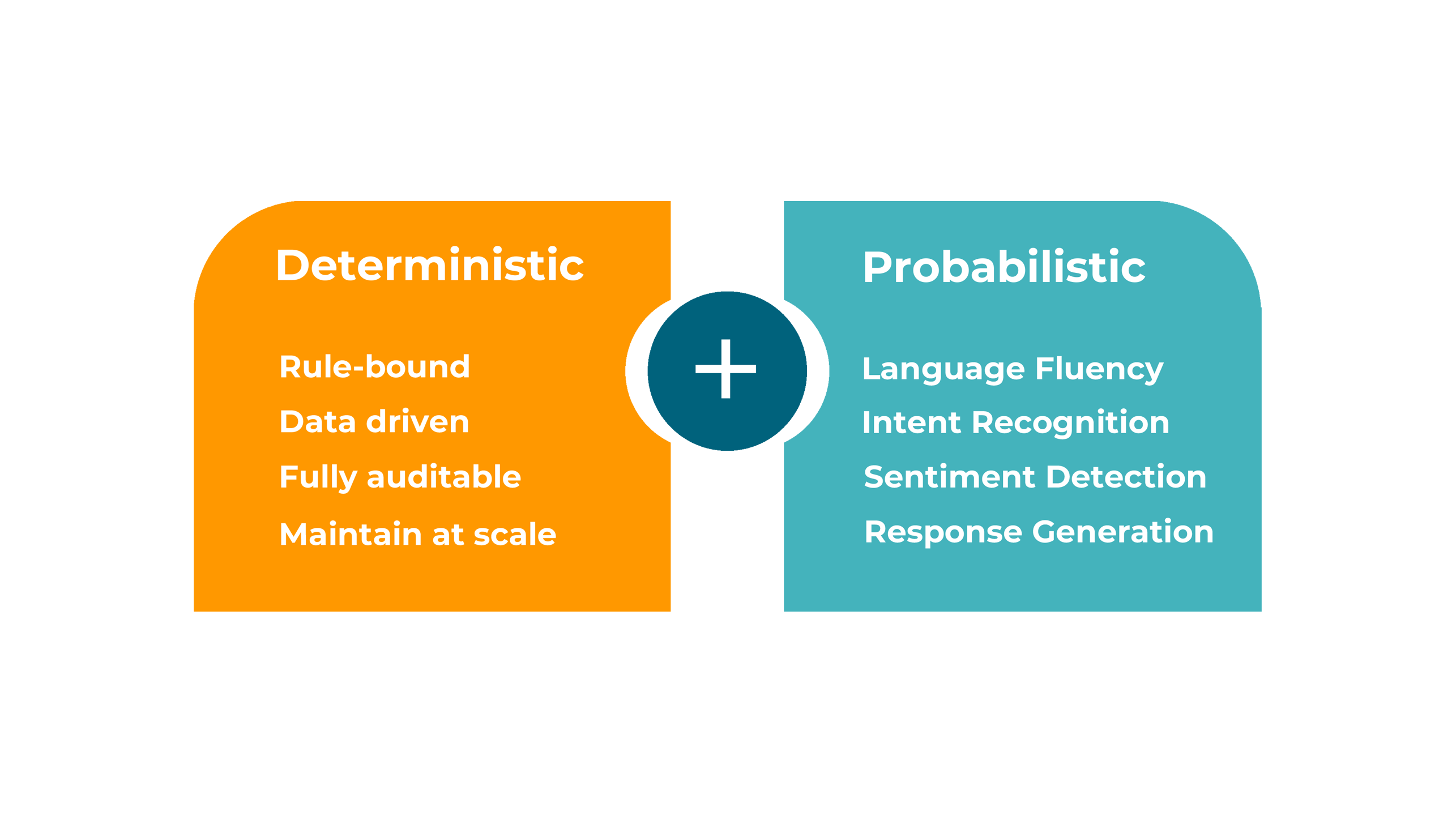 We combine rule-bound auditable logic with natural fluency and flexibility. The result is unassisted automation that is both accurate and trusted.